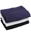 100% cotton. Luxurious thick pile terry towelling.Flat weave border (12cm).Excellent absorbency qualities.Hanging loop.