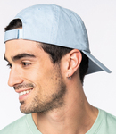 100% organic cotton. Pre washed.6 panel.Pre-curved peak.Tear release size adjuster.Due to the washing process each garment is unique.