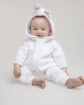 Plush all in one, YKK full front zipper, Bound hem and cuffs, Single jersey lining in hood, Rabbit design hood and floppy ears, Back tail, Embroidered face